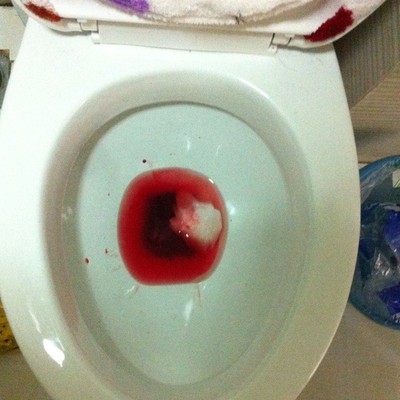2、肠息肉:出血量较少,血色鲜红,与大便不混合,有时伴黏液,近肛门处的息肉有时可脱出肛门外,